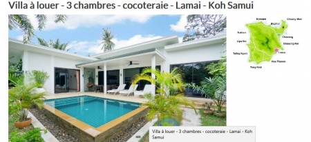 villa 3 chambres sur Lamai , avec piscine ,sur 800m2 de terrain arboré ; ménage prévu 1 fois par semaine .Disponible de mi-octobre à mi-décembre . Elle s'appelle villa MANILOU .